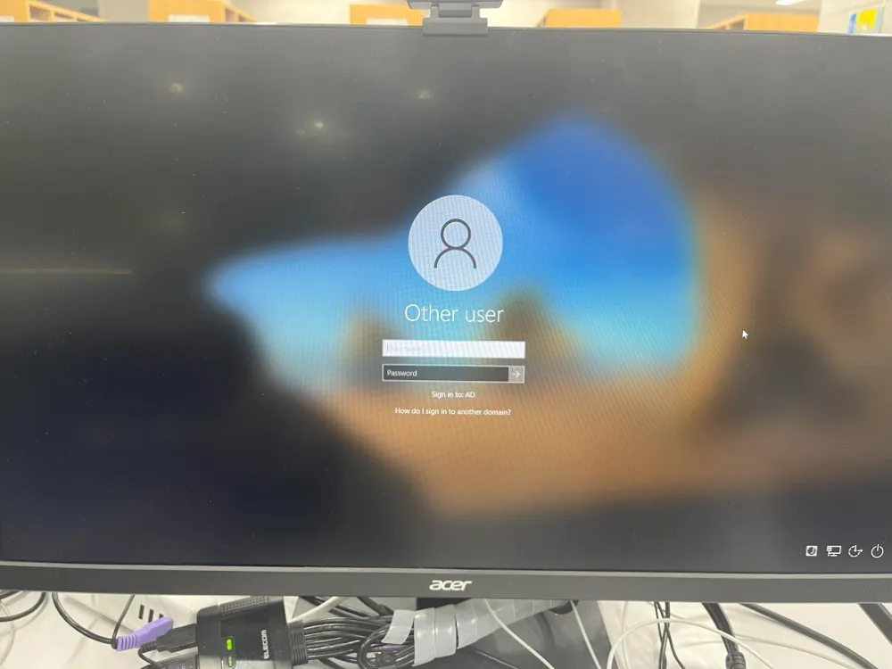 Windows環境が起動し,時刻と日付が画面左下に表示されます.画面をクリックするか,Enterキーを押して,以下の情報を入力してください.