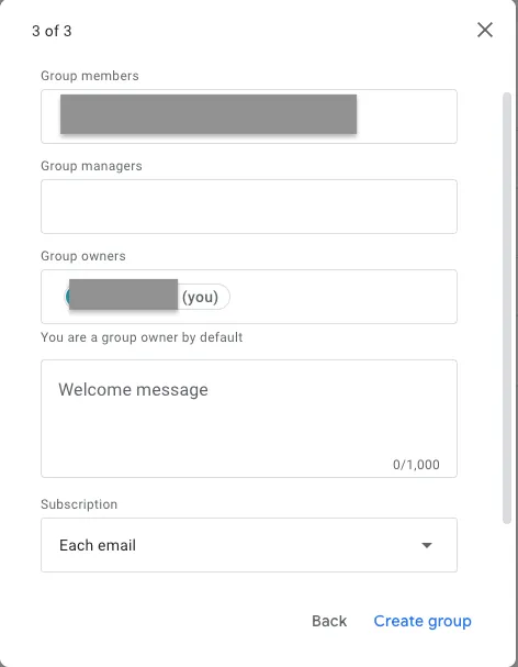 - Enter the email addresses of the members you want to add to the group under “Group members”.