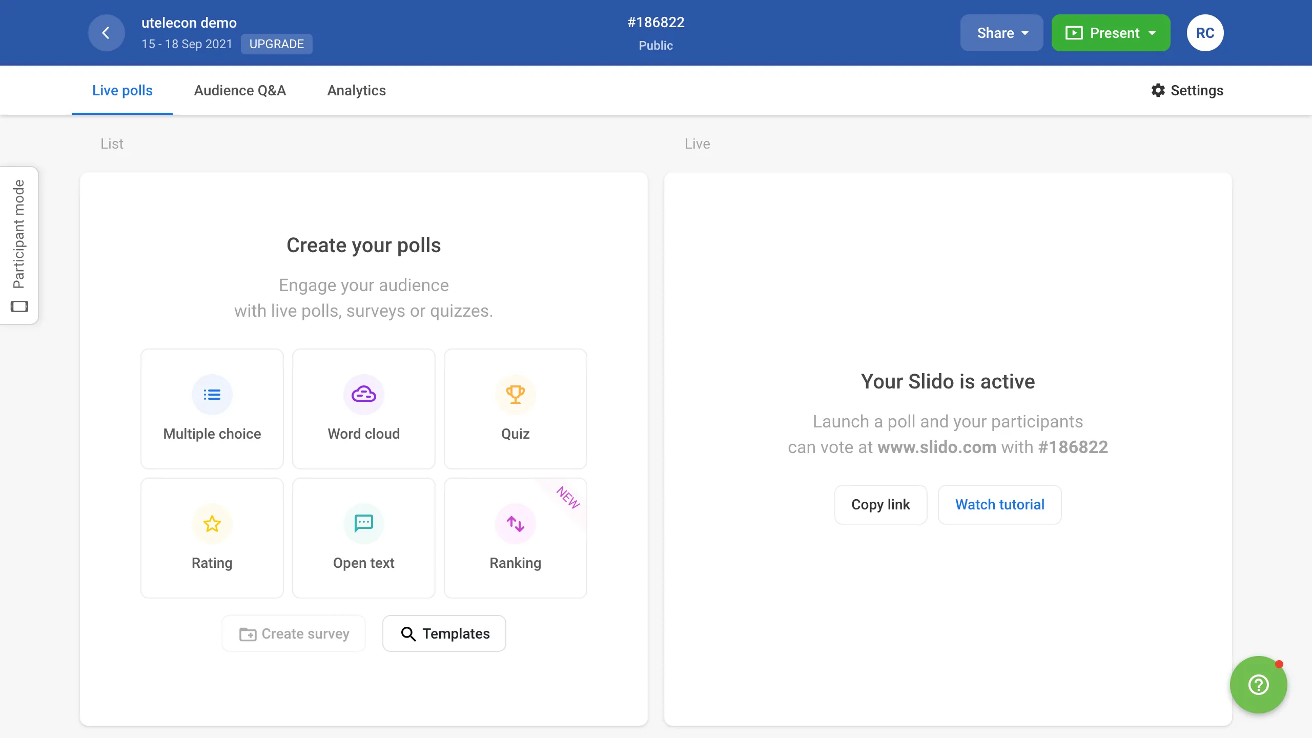 #shown at the top of the event screen with the participants. Participants can join the event by typing the event code on the Slido website.