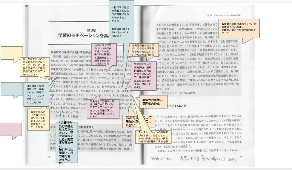 - グループワークのやり方の指示がとても丁寧に行われ,毎回自己紹介から始めたり自分の考えを話す順番が指示されていて混乱したりすることがなく,他の授業よりも円滑に学習できた.