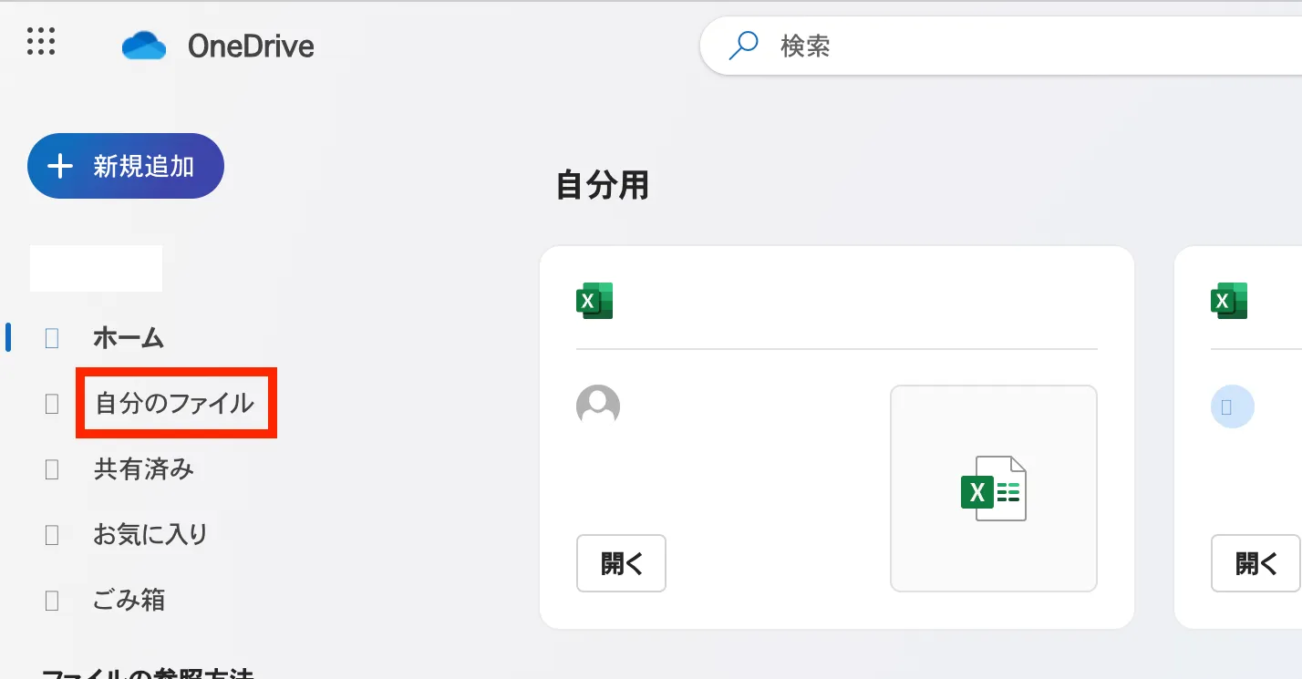 • 「自分のファイル」は,OneDriveにおける最上位のフォルダに相当します.
