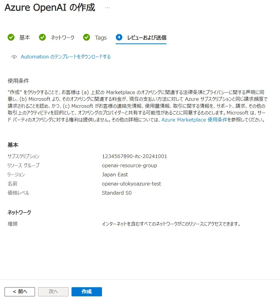 openai_resource_groupというリソースグループ名で作成し,以下に作成される各リソースをまとめます.まとめられたリソースは,権限の継承や削除などを一括で対応することが可能となります.