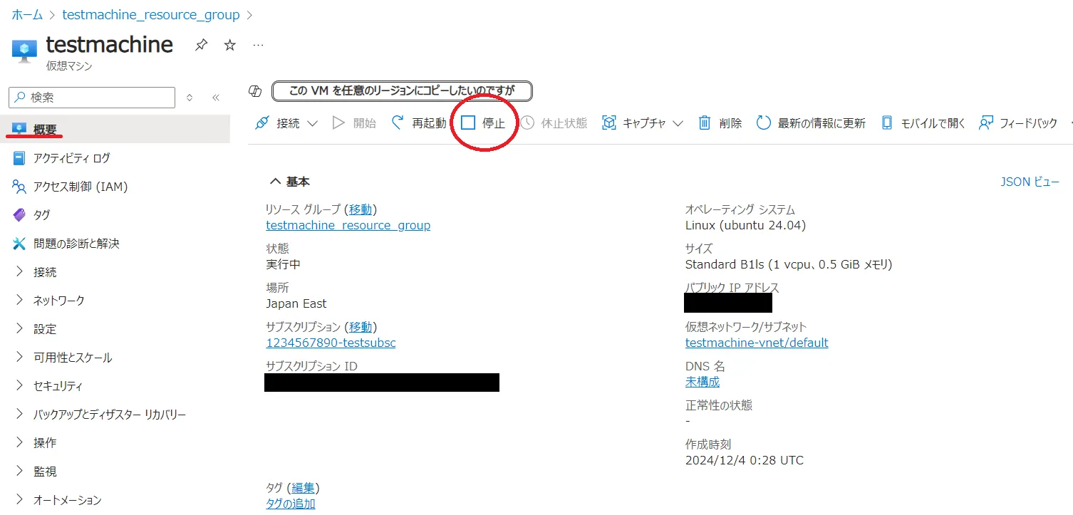haltやshotdownを実施してもマシンは停止しますが,Azure Portal のリソース上は起動したままの表示になっていますので,改めて起動したい場合は再起動をクリックしてください. - ストレージは,VMの状態に関わらずストレージサービス自体を停止または削除しない限り常にギフトクレジットを消費し続けます.ご注意ください.