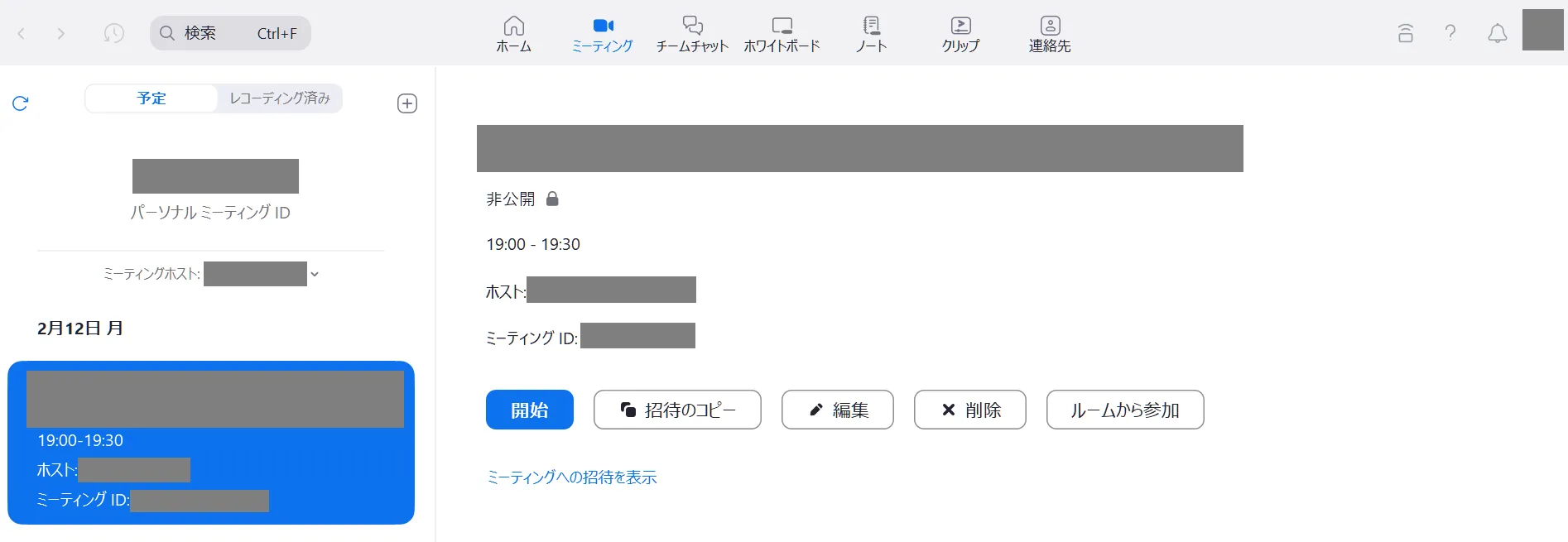 スケジュール作成特権を用いてのミーティングのスケジュールと編集について,Webブラウザでの手順を説明します.アプリやプラグインなどでの手順については,公式サポートページをご覧ください.→ スケジュール作成特権