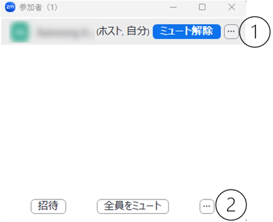 - ①参加者にカーソルを合わせたときに現れる「・・・」